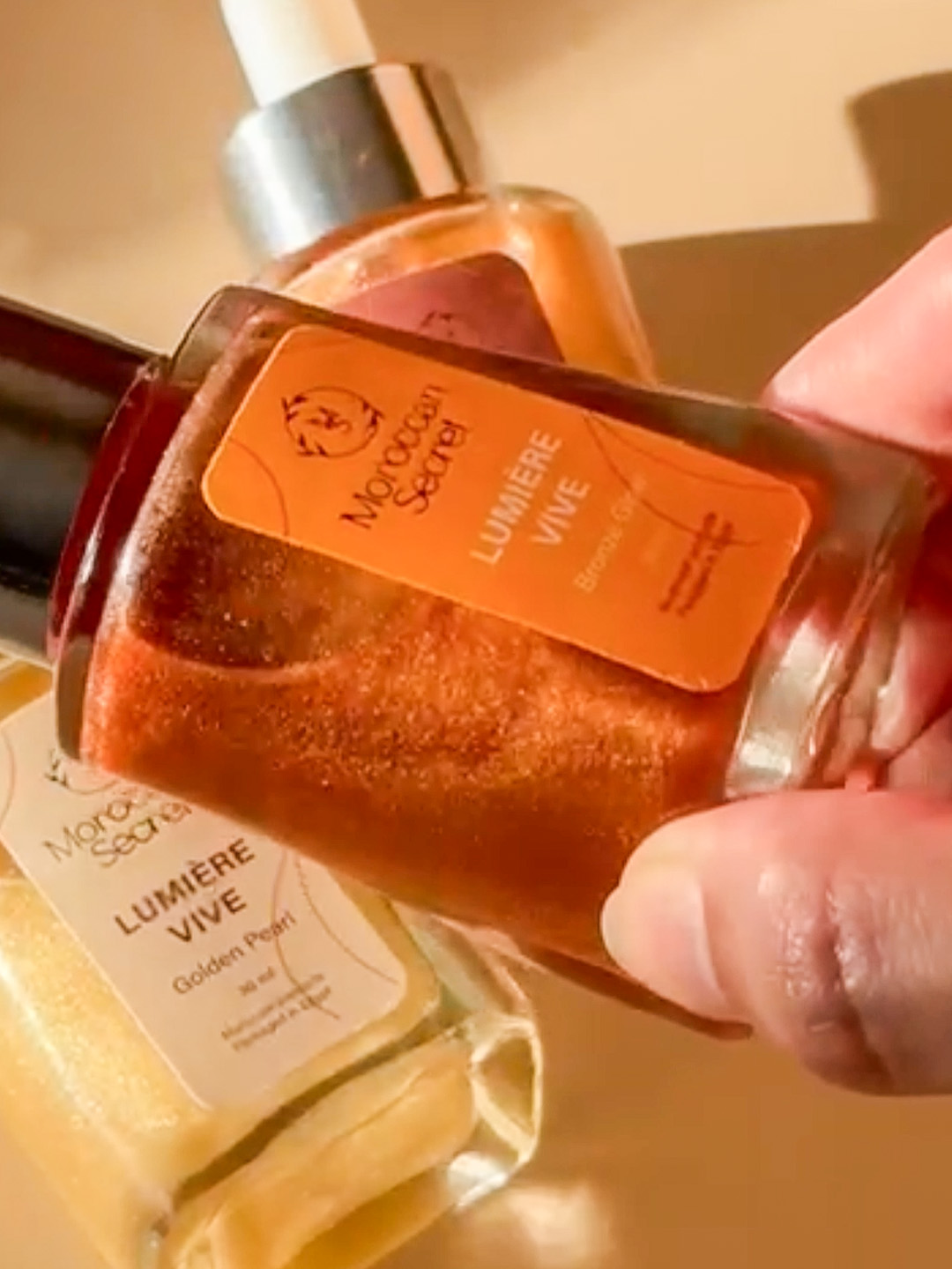 LUMIÈRE VIVE , elevate your beauty routine with our 100% natural luxurious Shimmer Oil.